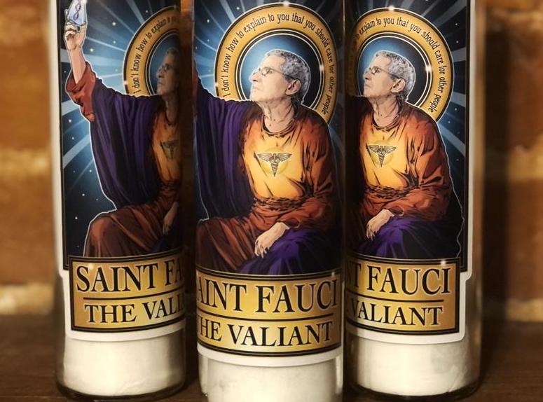 Unofficially, Dr. Fauci has become the face of the liberal response to the coronavirus pandemic. Whatever charisma Sally Quinn sensed, the Resistance is feeling. There are Dr. Fauci bobbleheads, bumper stickers, and votive candles. Kim Kardashian invited him to address a private Zoom call of thirty-seven celebrity friends so they could ask him about quarantine measures (Mila Kunis wanted to know whether it was safe to eat takeout straight out of the container; Fauci said yes). When Saturday Night Live needed an actor to play Fauci in a sketch, they cast Brad Pitt, and when the sketch was over, Pitt removed his wig and said into the camera, “To the real Dr. Fauci, thank you for your calm and clarity in this unnerving time.”